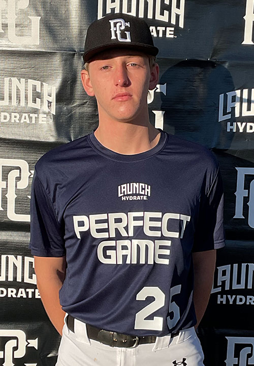 Jackson Clarke is a 2028 RHP/3B/OF with a 6-1 180 lb. frame from Goodyear, AZ who attends Estrella Foothills. Features a taller build with some projection and room to add. Ran a 7.63 60-yd dash. At the plate, operates from a wider base and uses a toe tap trigger. Some stiffness in his move into launch where at times he swings off his backside at times appearing stuck. Hands deliver the barrel on a flatter path into contact with a higher finish with avg. bat speed for his level. Inconsistent timing and feel for the barrel with best contact being a couple LDs he sent to the pull side when he was more synced up. On the mound, worked exclusively from the stretch. Lift into a hip high knee tuck with a smaller sit/hinge but holds it well as he drifts and gets down the mound. Lands on-line with avg. length. The arm action is longer out the back with some slight stab before coming up to a normal 3/4 slot. Ran his heater up to 84, living more low 80s where it had normal 4S traits and a bit of running action. Mixed in a low 70s SL that flashed sharp depth and he showed an ability to land it in-zone. Avg. strikes during his outing with tendency to get his FB in on righties. Named to Top Prospects List.