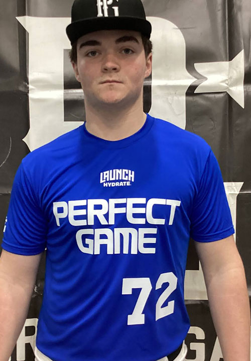 Bryce Baxa is a 2028 C/RHP/3B with a 6-2 230 lb. frame from Yorkville, IL who attends Yorkville. Extra big and strong physical build, especially for a 2028 player. Right handed hitter, sets up in a straight stance with a leg raise timer, stays compact and connected well, is very strong and creates bat speed and pump off the barrel, good fundamental swing approach to continue to build on. 7.01 runner in the sixty. Primary catcher on defense, sets up one knee down with on line footwork into his throws, quick transfers, longer arm action with a slower release but makes up for it big arm strength and accurate throws. Took a turn on the mound, has a compact arm action and high 3/4's arm slot, well controlled delivery and repeats it well. Fastball topped out at 81 mph and lived down in the zone with heavy sink. Change up was his best secondary pitch and was effective against left handed hitter, also threw a short soft slider. Good student. Named to the PG National Indoor Showcase Top Prospect List.
