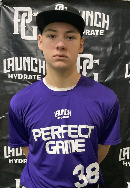 Jackson Bouchard is a 2029 RHP/1B/3B with a 6-2 221 lb. frame from Norton, MA who attends Mansfield. Big and physical build with plenty of strength throughout. Works from a high leg raise delivery with a high 3/4's arm slot. Fastball topped out at 80 mph with nice running life. Slider was a good pitch with late two-plane break and some occasional depth. Also flashed a change up with tumble and fade. Three-pitch starter's arsenal to use until his velocity improves. 5.65 runner in the forty. Worked out both at first base and in the infield, still developing his glove actions at both positions, best suited athletically for first base moving forward. Right handed hitter, sets up in a straight stance with a very high hand load and deep inward leg raise timer, pull side approach, has quick hands and strength at impact, lots of power projection. Good student. Named to the PG New England Indoor Showcase Top Prospect List.