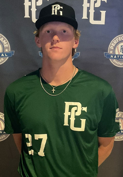 Sammy Swank is a 2026 RHP/1B with a 6-4 225 lb. frame from Lafayette, IN who attends Mccutcheon HS. Extra large with physicality present on the build. Primary right-handed pitcher who only pitched during the event. Side step into a leg lift above the belt with a long, smooth arm stroke. Four seam fastball gets good carry and ride and the fastball lived in the low-90s during the start. Strikes were good with the pitch and showed good sweeping action to the breaking ball with the ability to land for strikes. Flashed a changeup in the mid-80s as well. Strike-thrower with feel to mix predominantly two pitches. Great student. Verbal commitment to Kentucky.