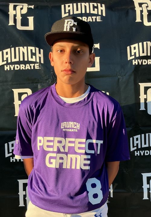 Isaac Garcia is a 2028 LHP/1B/OF with a 5-11 141 lb. frame from Chula Vista, CA who attends Eastlake. Started the event off clocking a 8.02 60-yard dash. A primary pitcher, secondary first baseman. Garcia features a 2-pitch mix (FB, CB) out of a 3/4 arm slot. Fairly repeatable delivery. Considered as a command/control guy where he can land his offerings for strikes. Ran the fastball to 74 mph with some arm side run. Curveball showed solid depth with 2/7 shape. At first base, he fields the ball out front cleanly, makes accurate throws with a quick release, has an idea of his footwork and fundamentals around the bag. Right handed hitter that hits from an even stance with his bat on his shoulder, hanging leg raise load, pull approach swing path with solid contact.