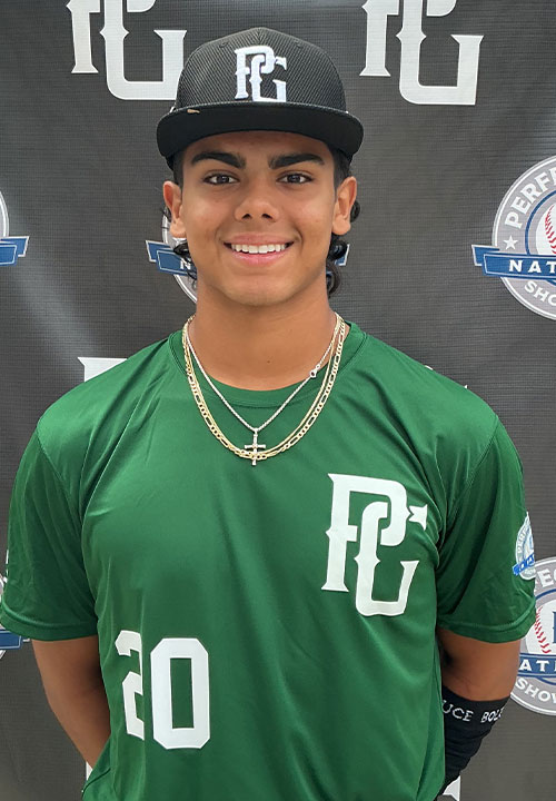 Gavin Ruvalcaba is a 2027 OF/LHP/1B with a 6-1 190 lb. frame from Hialeah, FL who attends American Heritage Plantation. Long and lean athletic build with some present strength and more to come. 6.83 runner in the sixty. Primary outfielder on defense, accelerates through the ball and into his transitions, has a long and loose arm action with good carry on his throws and more to come, right field projection. Left handed hitter, hits from an upright stance with a knee lift trigger, has a loose and well connected swing, meets the ball consistently out front with lots of jump off the barrel, calm and fluid hitting mechanics with feel for the barrel. Also pitched, has a slow paced and well controlled delivery with a full arm swing and a loose low 3/4's arm action/slot. Challenged hitters in the zone with a solid three-pitch mix, fastball topped out at 88 mph with some arm side life, threw a sweeping slurve type breaking ball as his chief secondary pitch, also mixed in a promising change up. Has some potential on the mound but his bat is his primary tool. Excellent student.