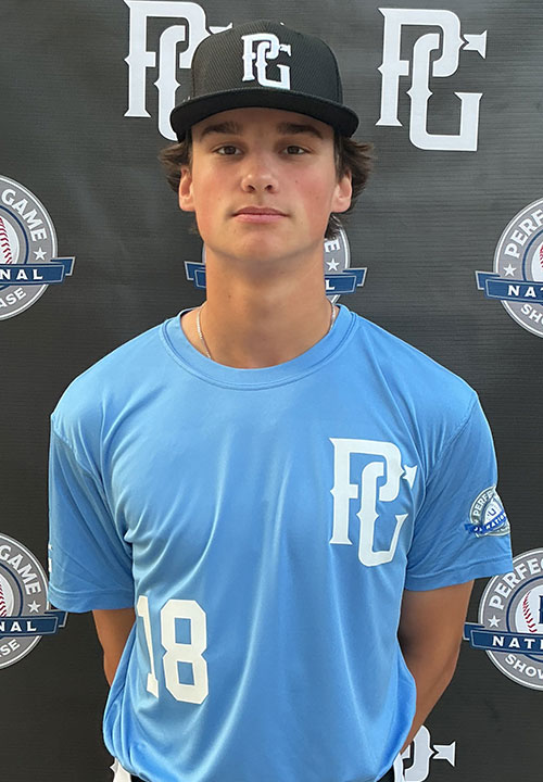 Cason Borchardt is a 2027 OF/LHP/1B with a 6-3 185 lb. frame from Horace, ND who attends Horace. Long and wiry athletic build. Left handed hitter, starts from a narrow stance with a high leg raise load, simple and direct hand path, uses his hands well,, creates some lift at contact, solid present bat speed with lots more to come, really projectable hitting tools. 7.03 runner in the sixty. Primary outfielder on defense, has a full arm action with some young carry to his throws, still developing his footwork to and through the ball. Took a turn on the mound, has a loose and quick arm from a 3/4's arm slot, moves well down the mound and repeats his mechanics. Fastball worked in the mid-80's, curveball had good tightness and 1/7 shape, also flashed a firm change up. Very good student.