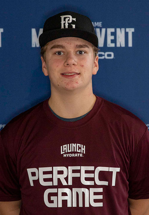 P.J. Kavka is a 2029 C/2B with a 5-8 160 lb. frame from Andover, MA who attends Austin Prep. Compact build with present strength. Behind the dish, he sets up in a slight side saddle crouch with offline footwork upon reception. Transfer are quick and releases from a low, slinging type slot. Average arm strength present and mostly accurate on the throws down. Right-handed hitter, even base and deep load. Intitial move is steep into the zone with a bit of head movement. Elongated to impact still developing feel to square. 8.37 60-yard. Great student.
