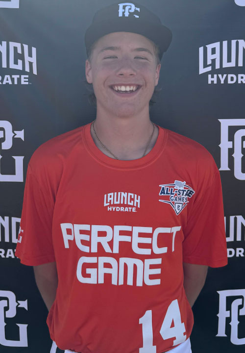 Jax Sherman is a 2028 SS/OF with a 5-10 130 lb. frame from Chandler, AZ. Sherman ran a 7.30 Sixty Yard Dash. Lean medium athletic build with some length and easy room for strength in the future. Primary Middle Infield With a quick first step laterally waiting back on the ball setting the glove early while receiving softly. Developing arm speed across the diamond with accurate throws to first. On the mound Sherman side steps into a mid chest leg lift. The stride is short landing inline with home plate. He comes from a higher slot with a medium length arm stroke through the backside. The football which sits in the mid 70s showed occasional late cut with feel to both sides of the plate. He mixed in a breaking ball in the upper 60s with some depth. Left handed hitter in the box with a narrow stance into a small toe tap trigger. He wraps the bat slightly around the head at trigger drive the ball hard on a line to the pull side.