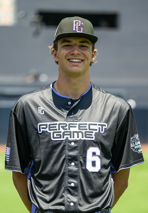 Jensen Hirschkorn is a 2026 RHP/1B with a 6-7 205 lb. frame from Kingsburg, CA who attends Kingsburg HS. Extra large frame with long limbs, high waist, and huge projection. Primary right-handed pitcher who only pitched during the event. Very simple mechanics with a slight rocker into a leg lift at the belt. Shorter arm swing in the back with a very easy, low effort release and operation. Fastball peaked at 95 mph and lived in the 92-95 mph range throughout, flashing good carry and life at the top of the zone. Located the pitch to both halves well and missed bats with it too. Short, biting slider with bullet shape that missed plenty of right-handed bats. Flashed a couple of changeups in the mid-80s as well that showed big potential. Lots of strikes and makes it look easy and effortless on the mound. Great student. Named to play in the 2025 Perfect Game All-American Classic