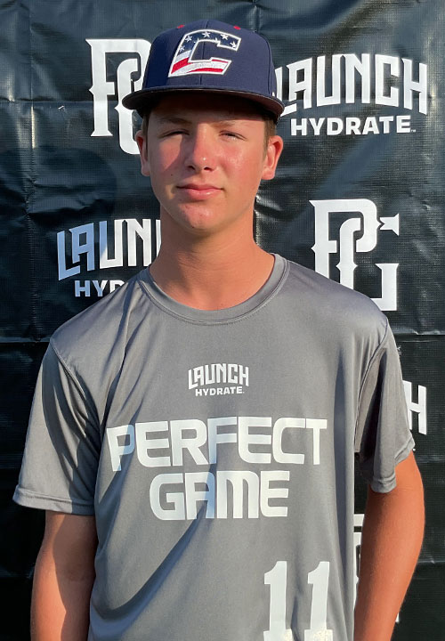Weston Rigsby is a 2029 OF/RHP/3B with a 6-0 160 lb. frame from Piedmont, SC who attends Powdersville. Medium young build. 7.48 runner in the sixty. Primary outfielder on defense, tends to wait back on the ball then run into his throws after catching it, fields deep to his body, improved through his round as he became more comfortable. Right handed hitter, sets up in a medium straight stance with a high hand set and a leg raise trigger, some rhythm into his swing, has developing bat speed with a line drive swing plane. Also pitched, works from a full wind up with a big side step start and a medium length arm swing to a low 3/4's arm slot, works under the ball at release. Fastball topped out at 74 mph with some cutting action as he comes across it at release. Also threw a change up with some running life and a soft curveball. Will keep improving in all areas as he gets stronger.