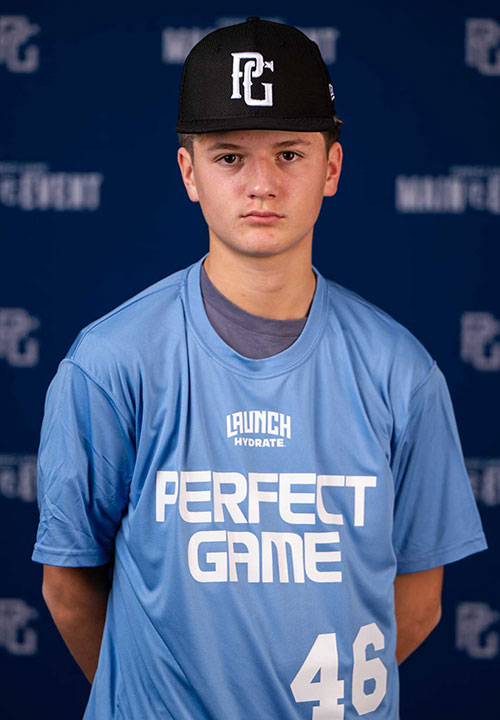Parker Haff is a 2027 SS/RHP/2B with a 5-9 135 lb. frame from East Moriches, NY who attends Center Moriches. Slender young build with lots of room to get stronger. 8.51 runner in the sixty. Primary middle infielder on defense, has some fundamental actions in his footwork and gets in position to make the routine plays, tends to get his glove down late, developing arm strength and makes accurate soft throws. Right handed hitter, hits from a high hand start with a late lift and replace leg load, foot is late getting down and he has to rush to catch up, ground ball contact to all fields. Also pitched, works from a short side step/leg raise delivery with a high 3/4's arm slot and a slightly closed landing out front. Threw strikes with a mid-60's fastball and a soft curveball. Good student.