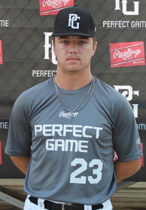 Logan Ervine is a 2023 RHP/OF with a 6-0 190 lb. frame from Villa Rica, GA who attends Villa Rica. Medium and stocky frame with a strong lower half. Ran a 7.03 second 60 yard dash. Primary right-handed pitcher, starts his delivery with a turn step up to a high leg lift, takes his arm back to a compact arm action up to a high 3/4 arm slot, gets downhill with good extension working well over his front side, lands slightly closed to the plate but does not effect his strike throwing ability. Fastball topped out at 83 mph, mixes in a curveball with 12-6 shape and depth to the pitch, straight changeup mixed in as well, solid three pitch mix that he can throw for strikes. Secondary outfielder, worked out in the outfield, low effort actions, stays online with his release and shows solid arm strength, quick and compact release with uphill carry. Righthanded hitter, open stance at the plate, inside hand path to the baseball, upper half dominant swing, will get mistimed with later hand load, strong lower half that he could utilize more of into his swing for added pop. Outstanding student.