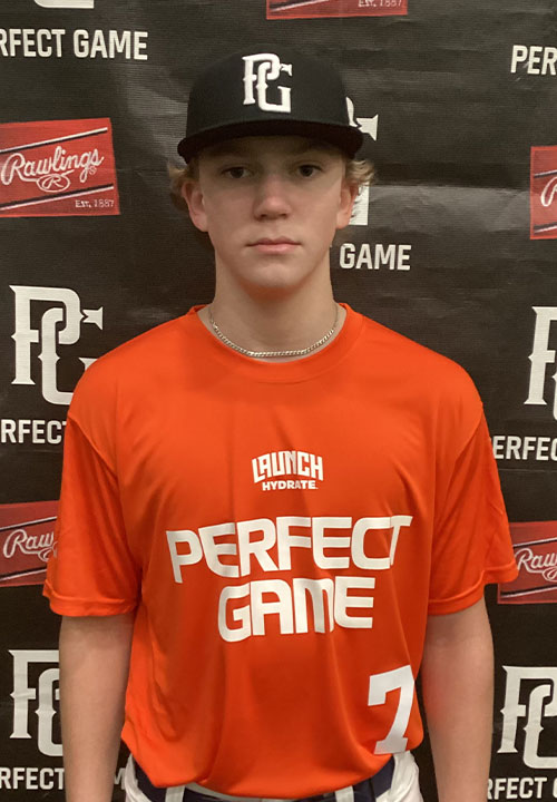 Colin Bruccoliere is a 2027 C/OF with a 5-10 160 lb. frame from Marlton, NJ who attends Cherokee. Bruccoliere worked exclusively from his primary spot behind the plate, starting from a slight side saddle set receiving cleanly with one-hop accuracy to the bag. He repeated a compact arm action well with quick footwork out of the set, posting a 2.28 pop time. Arm strength is expected to develop as the frame fills out and the '27 prospect physically matures. On the offensive end, the righty started from a narrow base with a wrapped hand set and hanging leg lift trigger, flashing strength in the hands with good barrel extension to produce impact gap to gap. He displayed young signs of carry on the baseball, posting an exit velo of 76 mph. Ran a 7.96 sixty yard dash. Good student. Named to Top Prospect List.