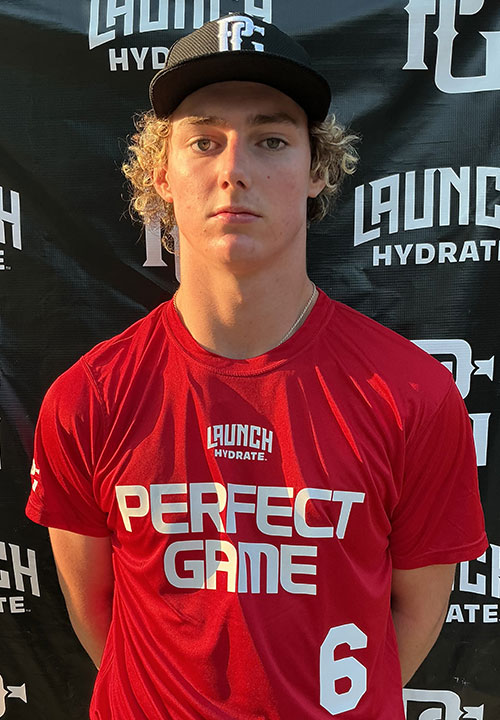 Caden Lenzi is a 2026 LHP/1B/OF with a 6-4 188 lb. frame from Woodstock, GA who attends Lassiter. Ran a 6.90 60-yard dash. Long and lean athletic build with lots of physical projection remaining. Primary left handed pitcher with two-way potential, has a short arm action and throws from a 3/4 slot. Ran a 3-pitch mix, fastball topped 83 and ran fairly straight, has been up to 87 in previous event and showed more arm strength in fielding drills. Mixed with a sharp breaking slider (1800 spin) and a fall off the table change-up (1400 spin). Threw 3 innings allowing 1 run and collecting 4 Ks. Secondary first baseman, has soft hands and a good feel for the position. Strong arm with a full stroke, ran it up to 90 across the diamond, very athletic and plays position well. Hits from the left side, starts in a balanced stance and a spread base with his hands high. Short stride with a heavy barrel through the zone, hands work quick and stay tight with good extension, plenty of power potential. Good student. Named to the PG Summer Main Event Showcase Top Prospect List.