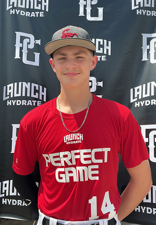 Noah Kloiber is a 2029 1B/RHP/C with a 6-1 185 lb. frame from Fulshear, TX who attends Jordan High School. Very big and strong build for his age, especially in the lower half. Right handed hitter, starts from an open stance with a deep hand load, big leg raise trigger that tends to lock his hips up at times, good swing plane in the zone but can be long getting the barrel there consistently with his swing length and timing, showed his lift and power to the opposite field, lots of potential as he makes swing adjustments and gets repetitions against better pitching. 7.14 runner in the sixty. Primary first baseman on defense, has an idea on his footwork and turns well, gets the glove down early, makes accurate throws from a lower slot, will be an asset on defense at first base.